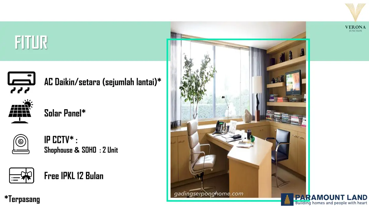 Commercial lofts baru di Gading Serpong launching perdana 2023 oleh pengembang Paramount Land dengan nama Verona Junction. Konsep baru area komersial Verona Junction Paramount Land menawarkan kebutuhan ruangan bisnis yang dinamis dengan lokasi yang strategis di Gading Serpong, Tangerang.